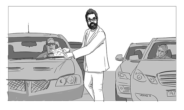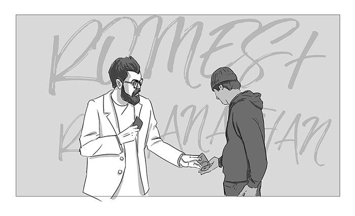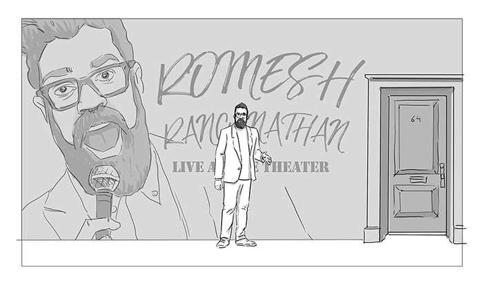 Storyboard for a commercial for a comedy tour for Romesh Ranganathan